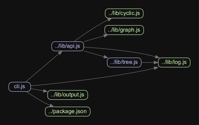 For example, if you do the git clone of madge js library, and run npm install when you run madge on its library, you will see below